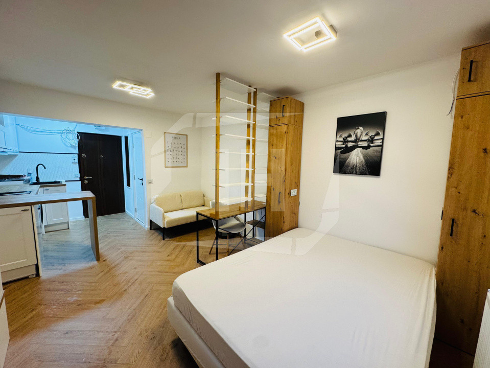 Garsoniera este complet mobilată și utilată, pregătită pentru mutare imediată. Dispune de centrală termică proprie, iar blocul este dotat cu sistem de supraveghere video și curte comună unde se poate parca.