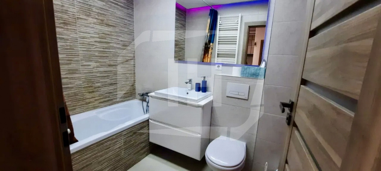 -dotat cu: plita, cuptor, masina de spalat, aer conditionat, combina frigorifica, TV, internet.
