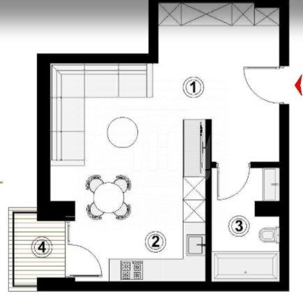 Compartimentarea locuintei este semidecomandata si a fost gandita astfel: living open space cu bucatarie, baie si hol.