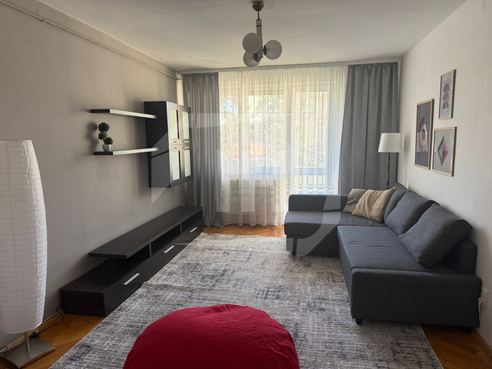 Se oferă spre închiriere apartament cu 2 camere decomandate, situat la etajul 4 al unui imobil cu acoperiș din țiglă. Locuința este foarte curată, luminoasă și oferă vedere spre parc, fiind înconjurată de spații verzi.