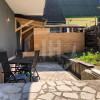 -terasă de 16 mp în spatele clădirii oferind un spațiu plăcut pentru relaxare sau lucru în aer liber, o grădină mică în jur și o căsuță de grădină care asigură spațiu de depozitare în plus.