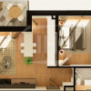 - 2 camere, cca 48.2mp: living cu bucatarie - baie - hol