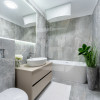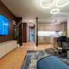 Mobila este realizată integral la comandă din MDF, iar apartamentul este dotat cu electrocasnice premium Electrolux: mașină de spălat vase, mașină de spălat rufe, uscător, aer condiționat, TV smart etc. Totul este nou, în garanție, și se vinde la cheie.