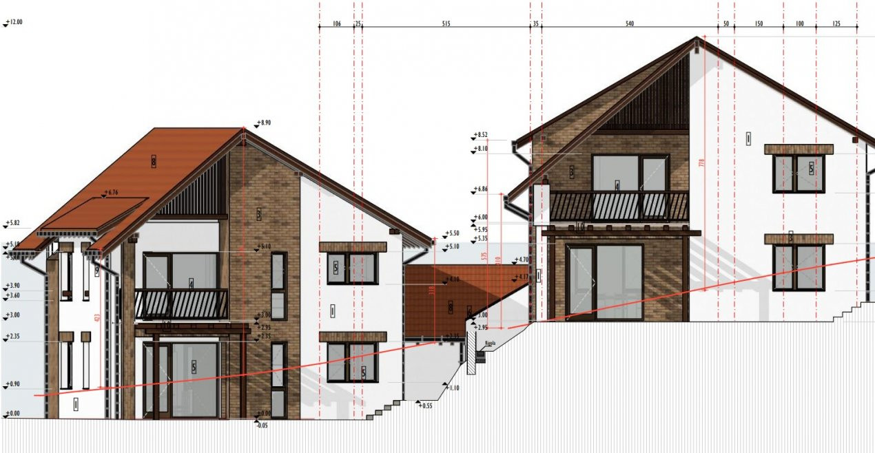 - Etaj: 3 dormitoare, 2 bai, dressing si hol.