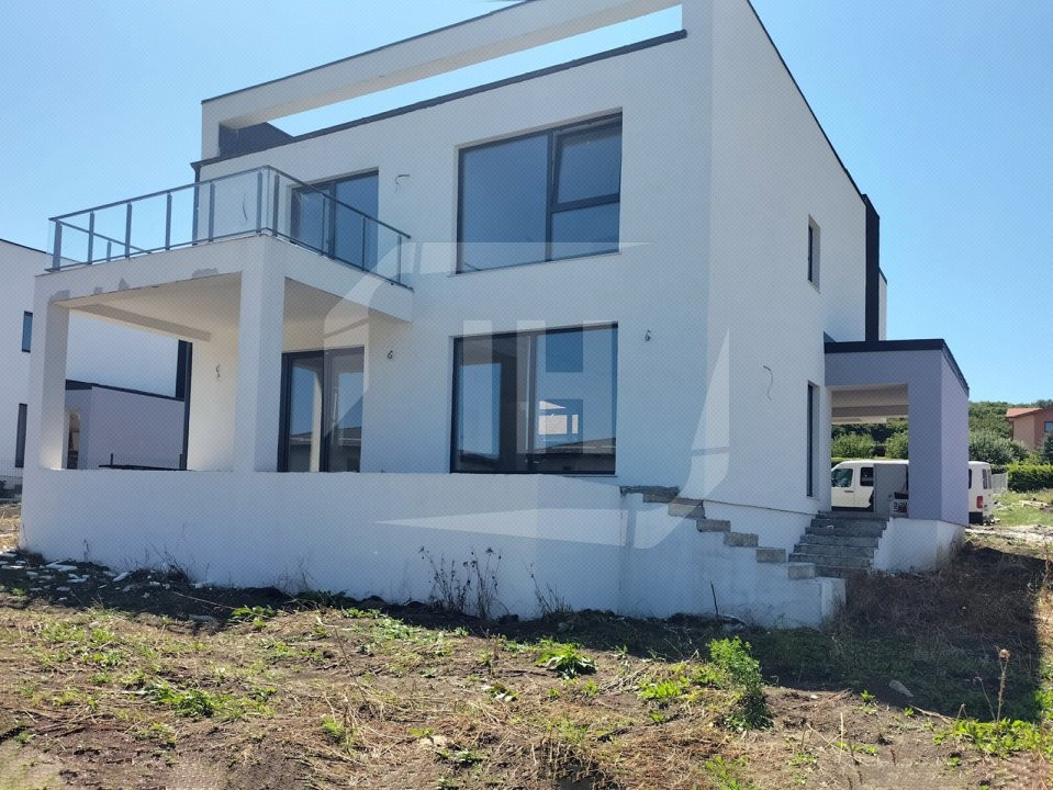Casa se vinde la stadiul de finisat la exterior si semifinisat la interior: sape, pereti cu un rand de glet, instalatiile la pozitie, curte imprejmuita, pavaj la intrarea in garaj. Estimare finalizare constructie martie 2025.