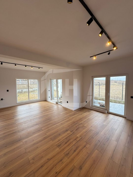 Va oferim spre vanzare casa individuala situata in Chinteni, cu suprafața utila de 161 mp din care 21 mp garaj si 369 mp teren. Este dispusa pe doua niveluri P+E si este organizata astfle: Parter compus din living cu bucătărie cu zona de luat masa, birou, hol, baie, garaj si terasa. Etajul este compus din 3 dormitoare, 2 bai si 1 dresing. Podul este utilizabil pentru depozitare.